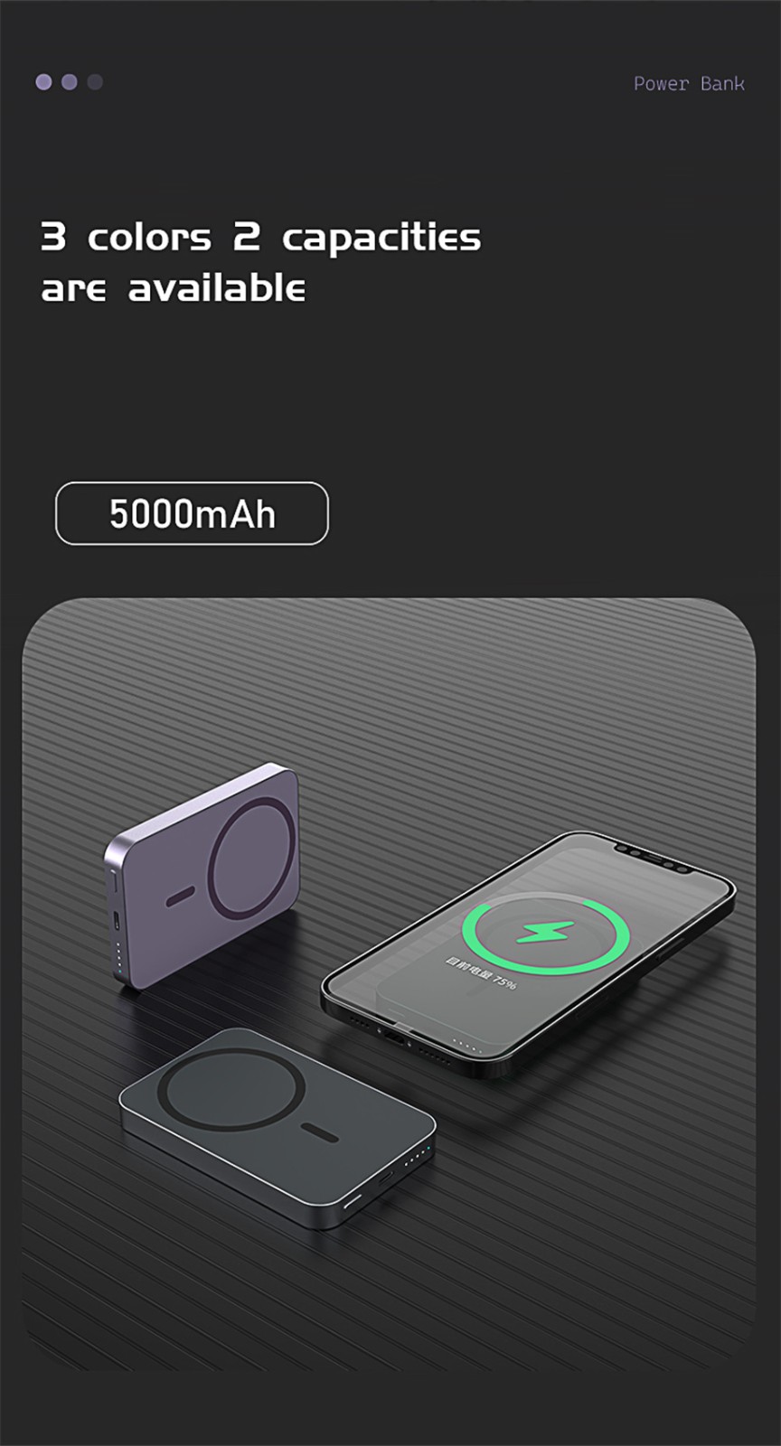 This power bank boasts an impressive 5000mAh capacity, allowing it to charge your devices multiple times on a single charge. Its high capacity ensures that you stay powered up throughout the day, whether you're on-the-go or at home.