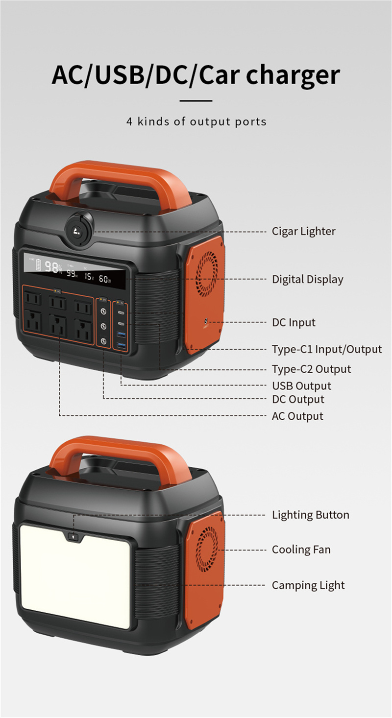 Portable Power Station is refers to an outdoor multifunctional mobile power supply,which is designed based on solar charging, solar storage anddischarge control management. With built-in high capacity andhigh-performance lithium battery, the product is made based on theadvanced auto power lithium battery technology with multiple safetyprotections and strong output energy.