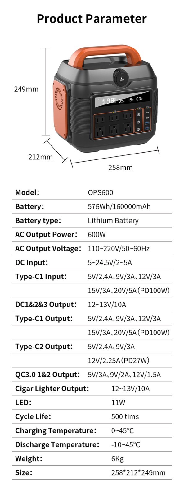 600W Portable Power Station Price:¥ Id:JH-OPS600